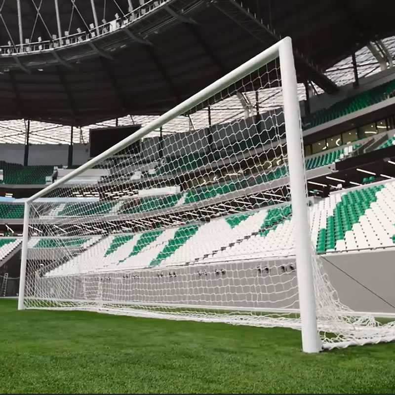 The Stadium Bowl is equipped with two FIFA compliant large format direct view LED displays able to show scores, match content, instant replays advertising and a wide range of video content. Viewing distances are large and so a correspondingly large pixel pitch could be used making the displays relatively economic. Each public entrance also features a wide banner style large format display for the conveyance of information and advertising messages, these displays are situated with a shorter viewing distance to the public walking into the entrances and consequently use finer pixel pitch than the scoreboards.
